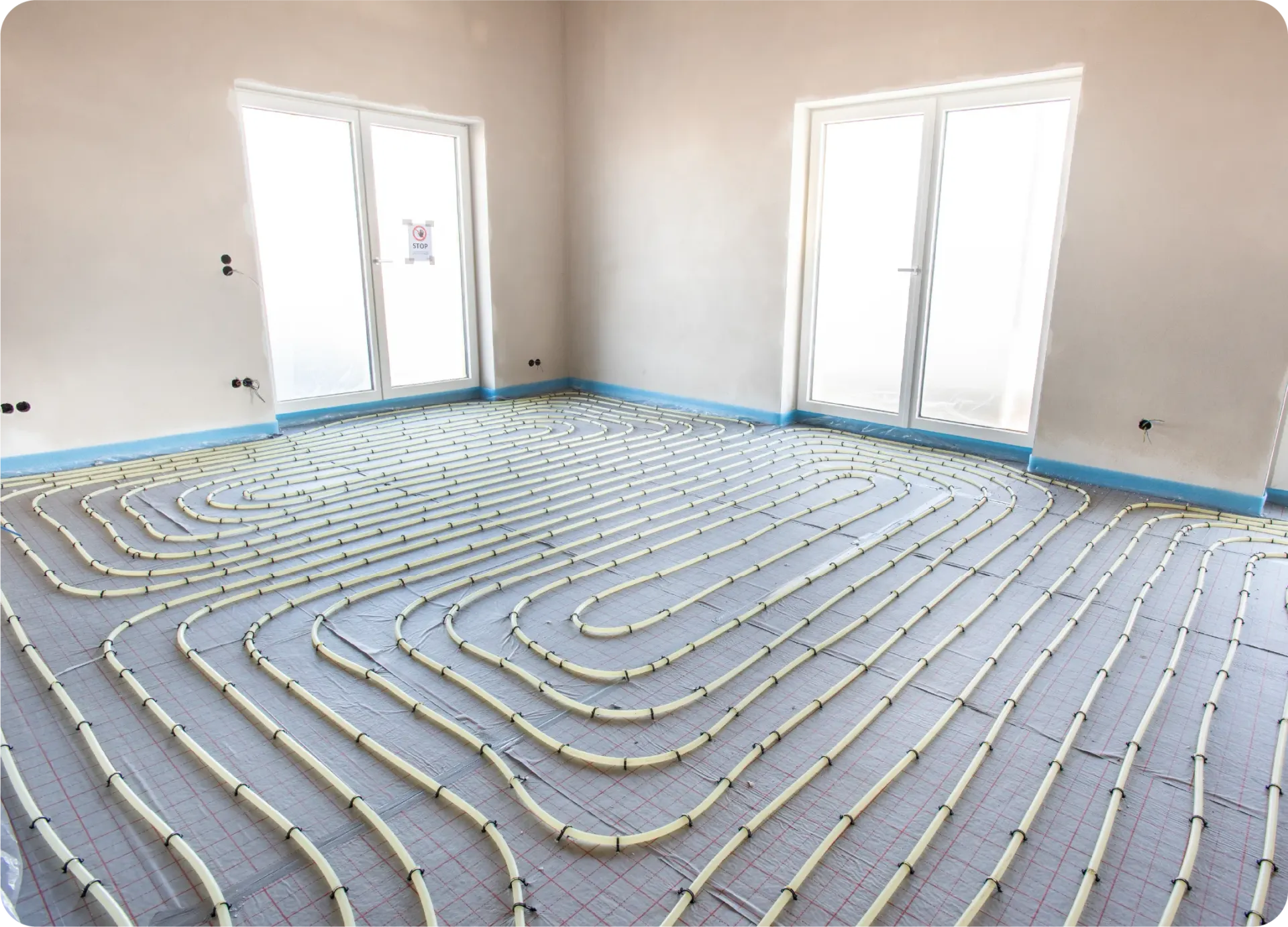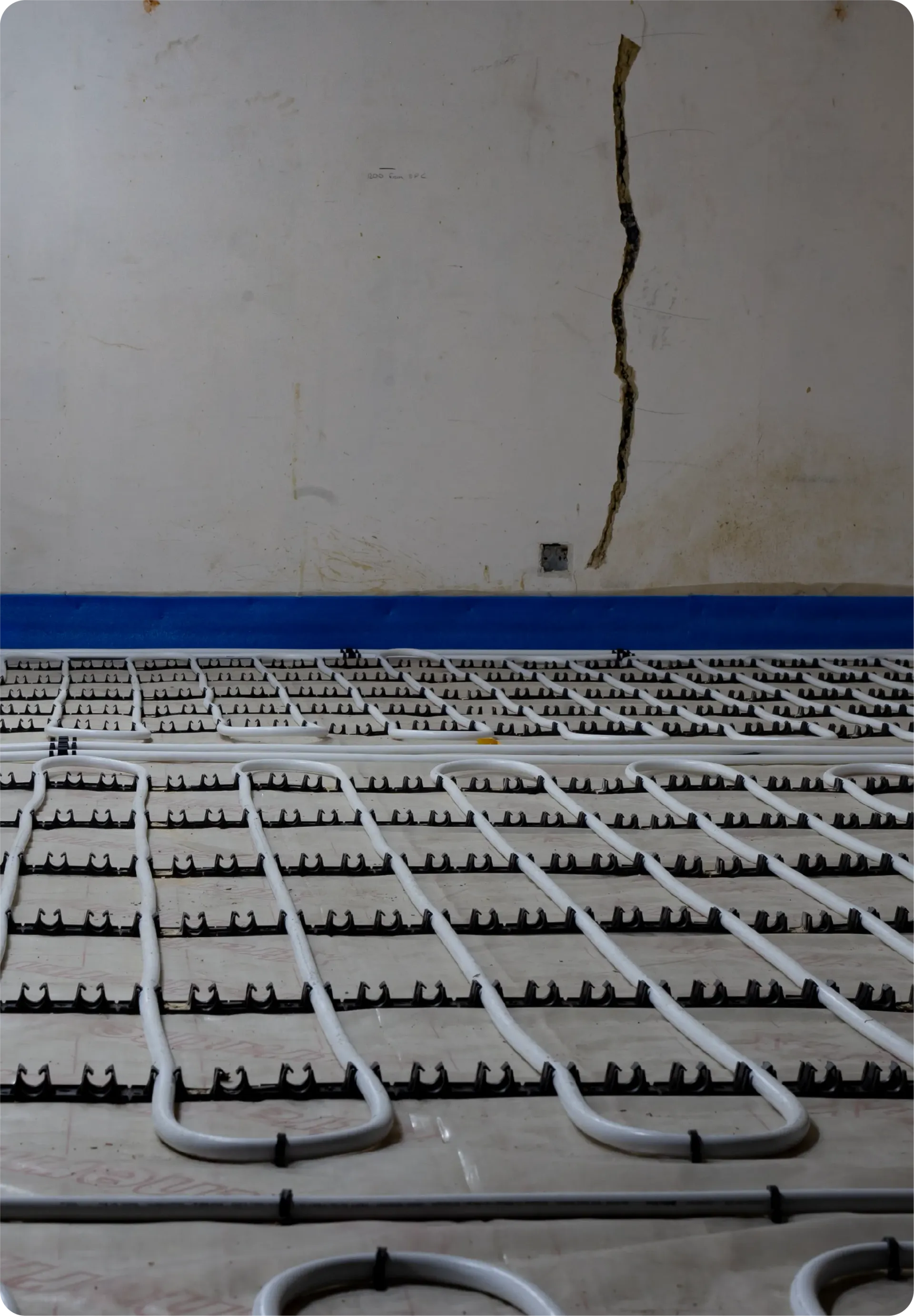Let us handle everything with our proven underfloor heating and liquid screed system — installed faster,